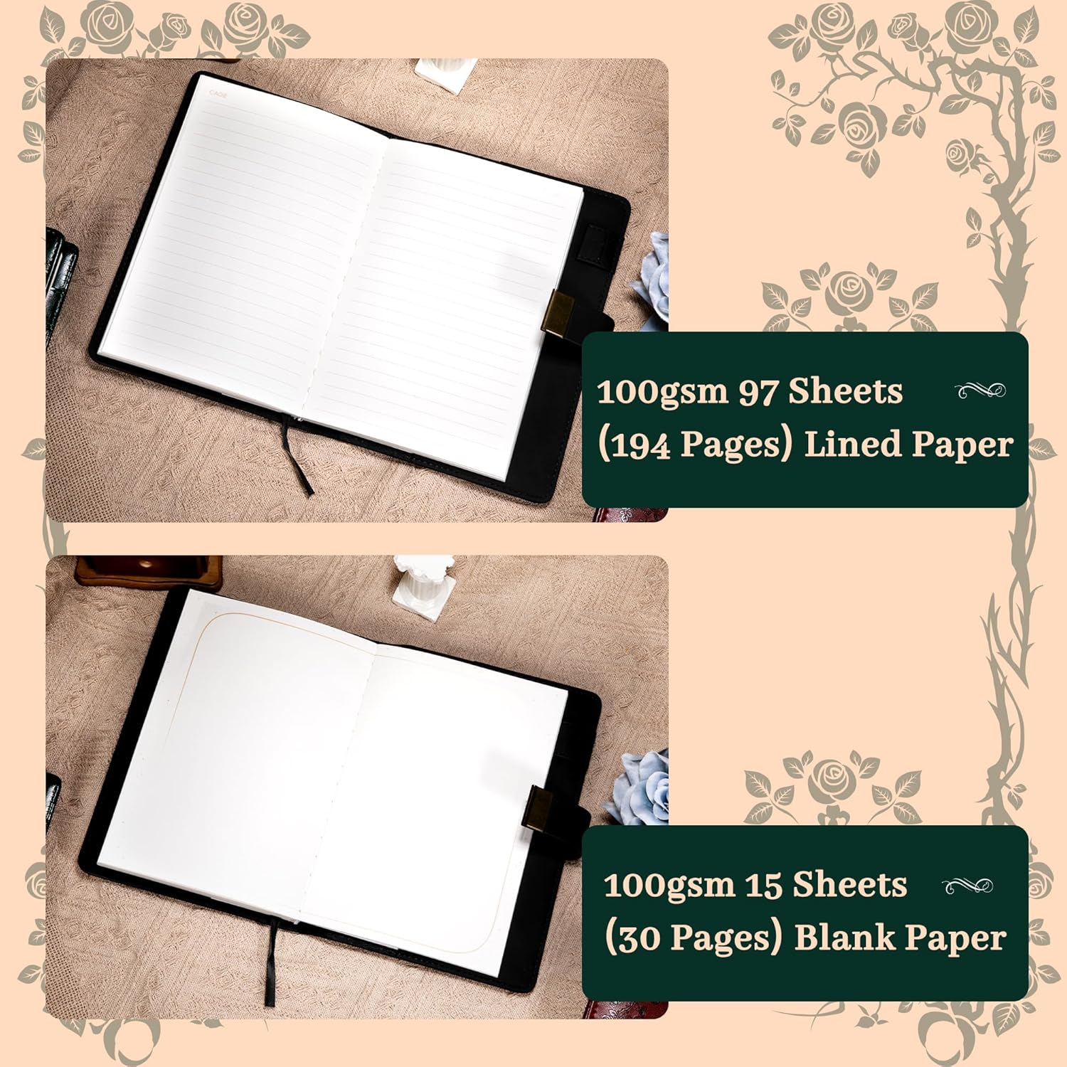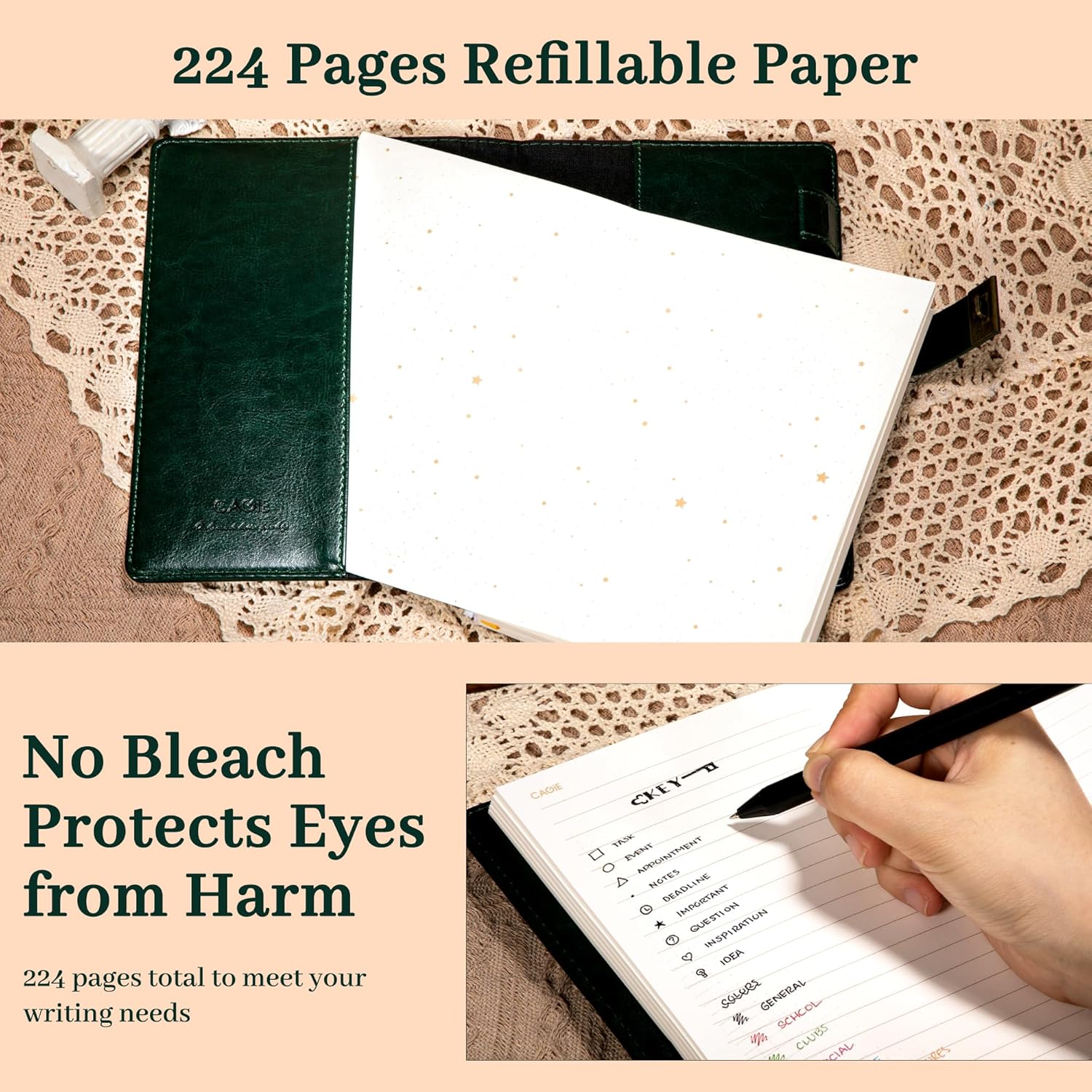 - ANTI-BLEED PAPER -- 5.5 x 8 Inch Refillable Journal has 100gsm 224 pages paper inside. Ensure a smooth writing experience and ensure that ink does not seep onto the page. Semicircular incision to prevent scratching fingers