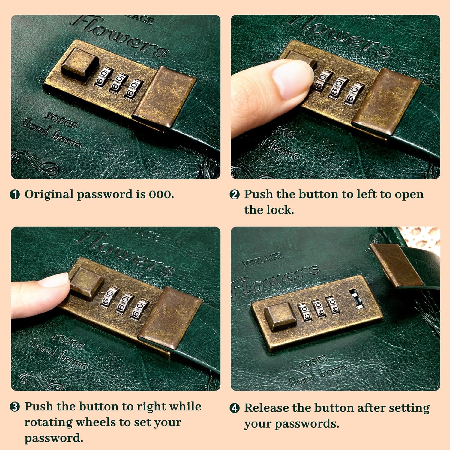 - PERSONAL LOCKING JOURNAL -- CAGIE diary with lock is simple to operate.0-9 3-digit password code,1000 of number combination, a good degree of confidentiality. Don't worry about others seeing your secrets