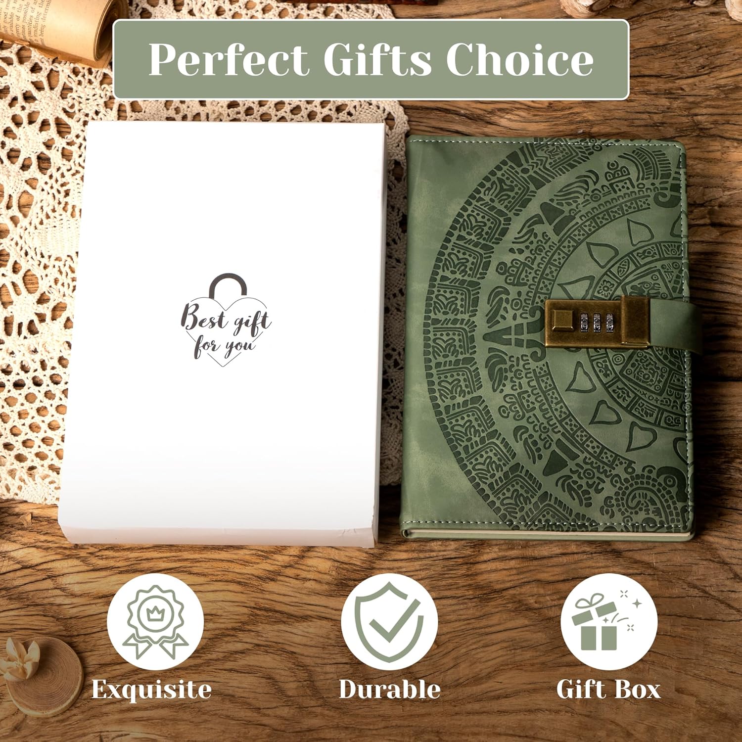 - SECURE YOUR THOUGHTS -- Our CAGIE diary with lock features a vintage metal lock that provides 1000 unique combinations, ensuring your personal space and privacy are fully protected. This locking diary is designed to keep your most intimate thoughts secure and private.